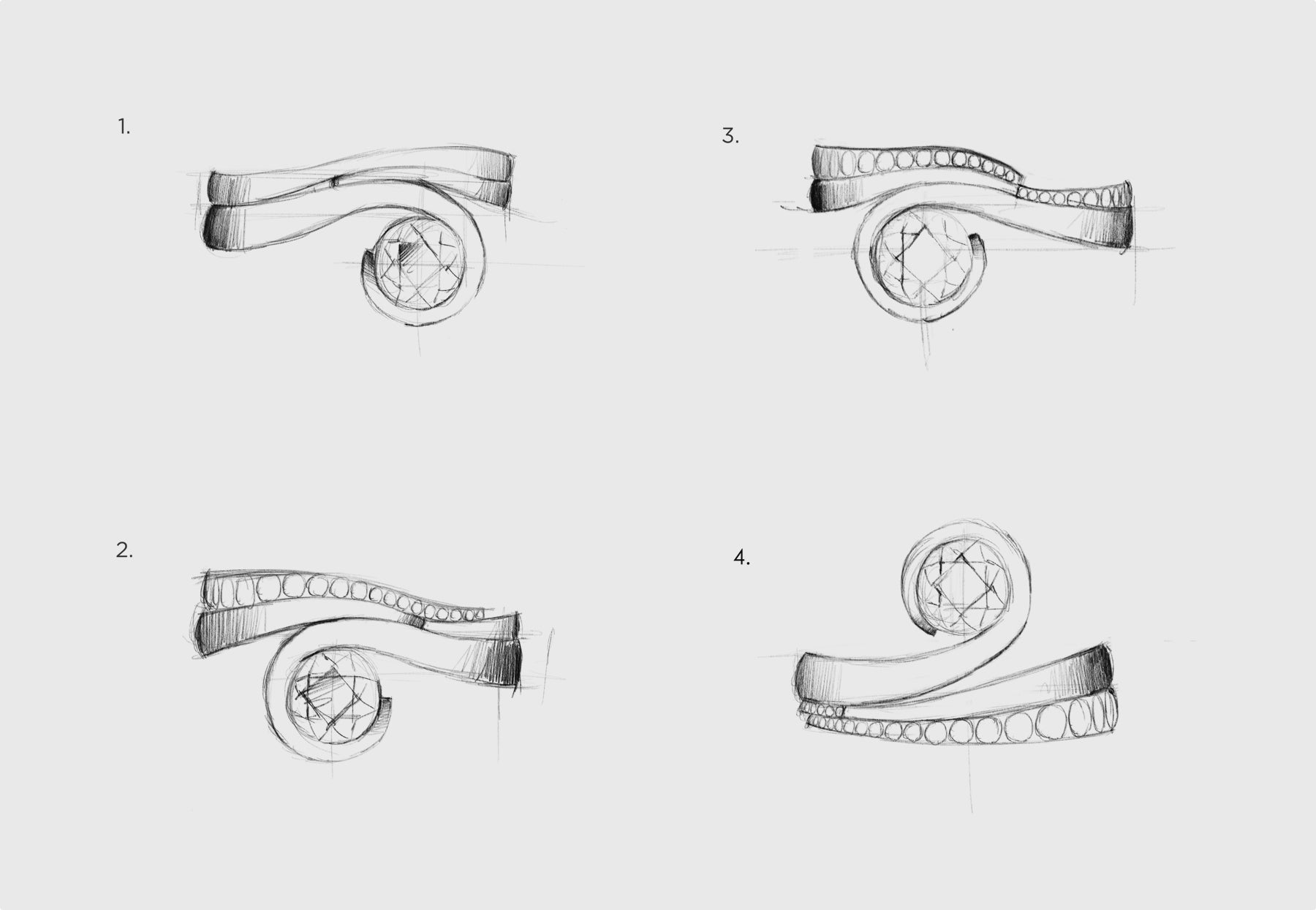 Our award-winning designs range from elegant, modern engagement and wedding rings to unique statement pendants, earrings and dramatic cocktail rings. We specialise in bespoke jewellery design and many of our pieces are unique creations commissioned by clients. Bespoke designs usually begin with sketching and may involve model making in wax or metal.