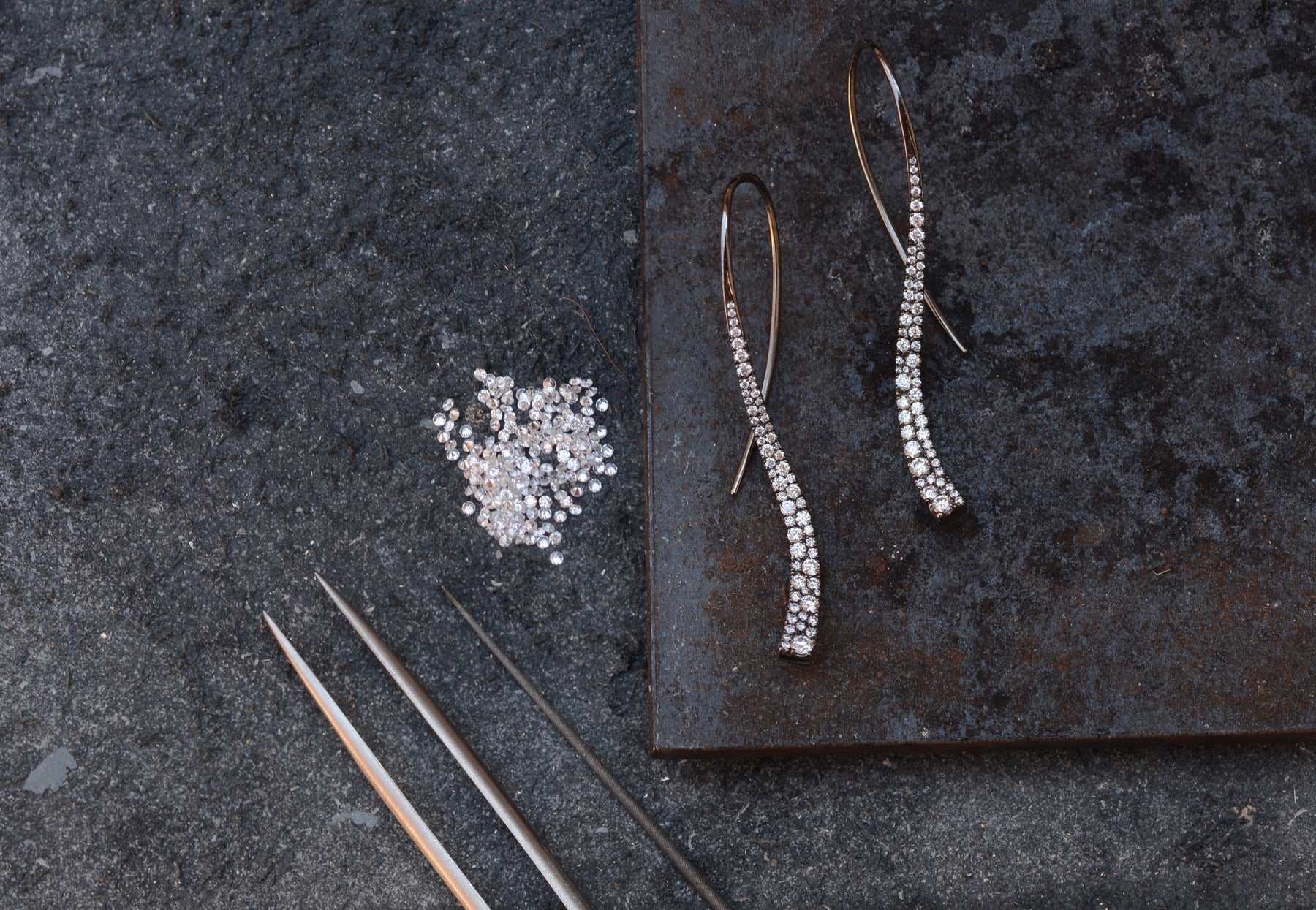 Every piece of our jewellery is designed, made and set in-house. We have over 20 years’ experience in bespoke jewellery making and diamond-setting so you can be confident that your jewellery will last for generations.  Our London atelier combines a shop display space with our workshop and you are welcome to come in and watch us at work.