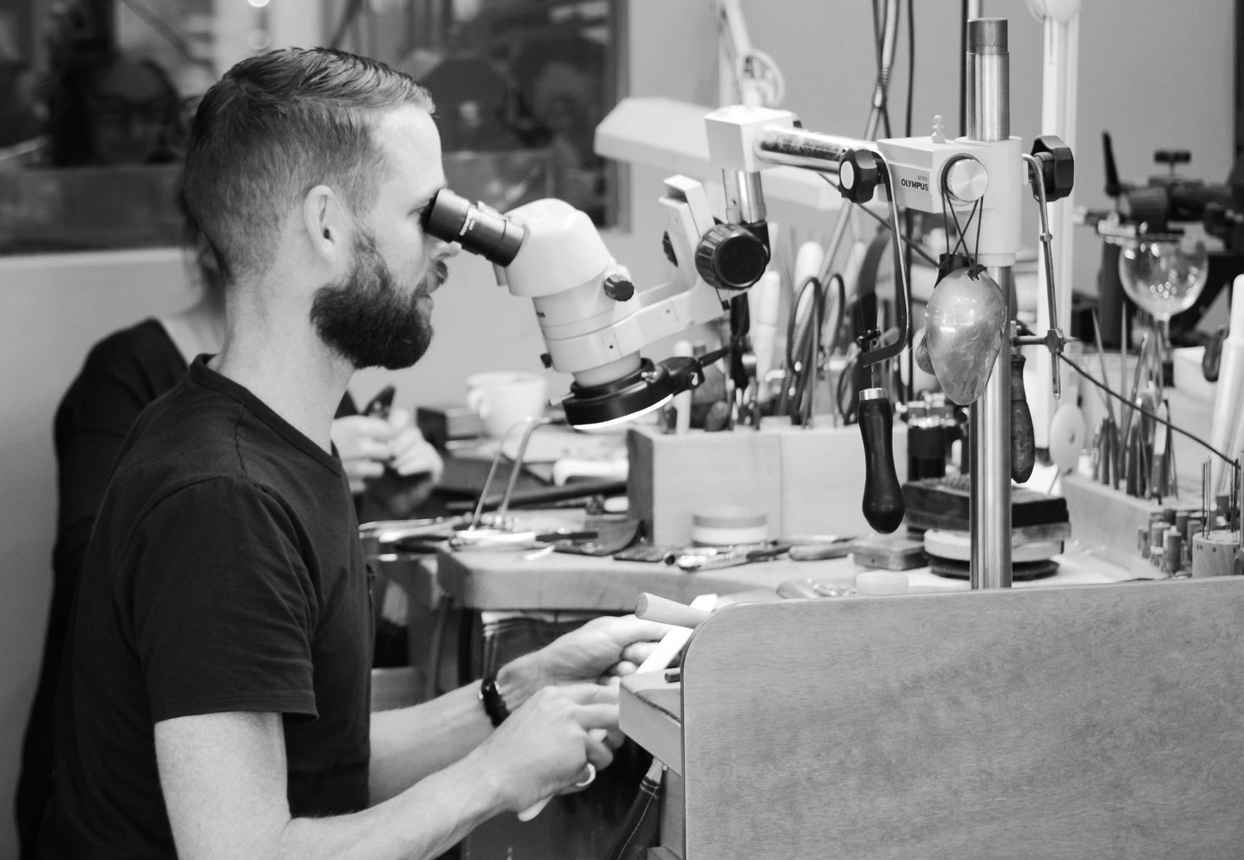 Each piece of our jewellery is made under a microscope for accuracy and precision. This level of detail is essential in order to create perfectly finished jewellery that will endure years of wear. We often set diamonds as small as 0.5mm in diameter and cut four tiny claws to secure each stone. Working under a cutting edge microscope ensures we can set each stone securely, even when working at this scale.