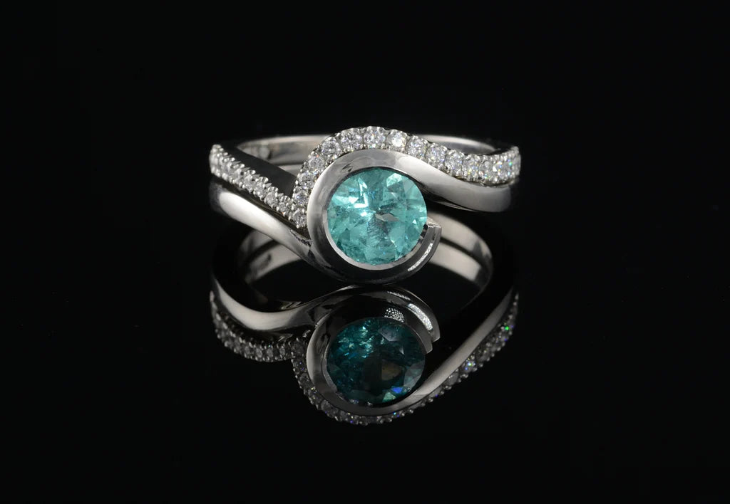 Paraiba tourmaline’s distinctive neon blue-green colour makes it a beautiful choice for an engagement ring. Its remarkable colouring and rarity mean that Paraiba is highly prized and extremely valuable.