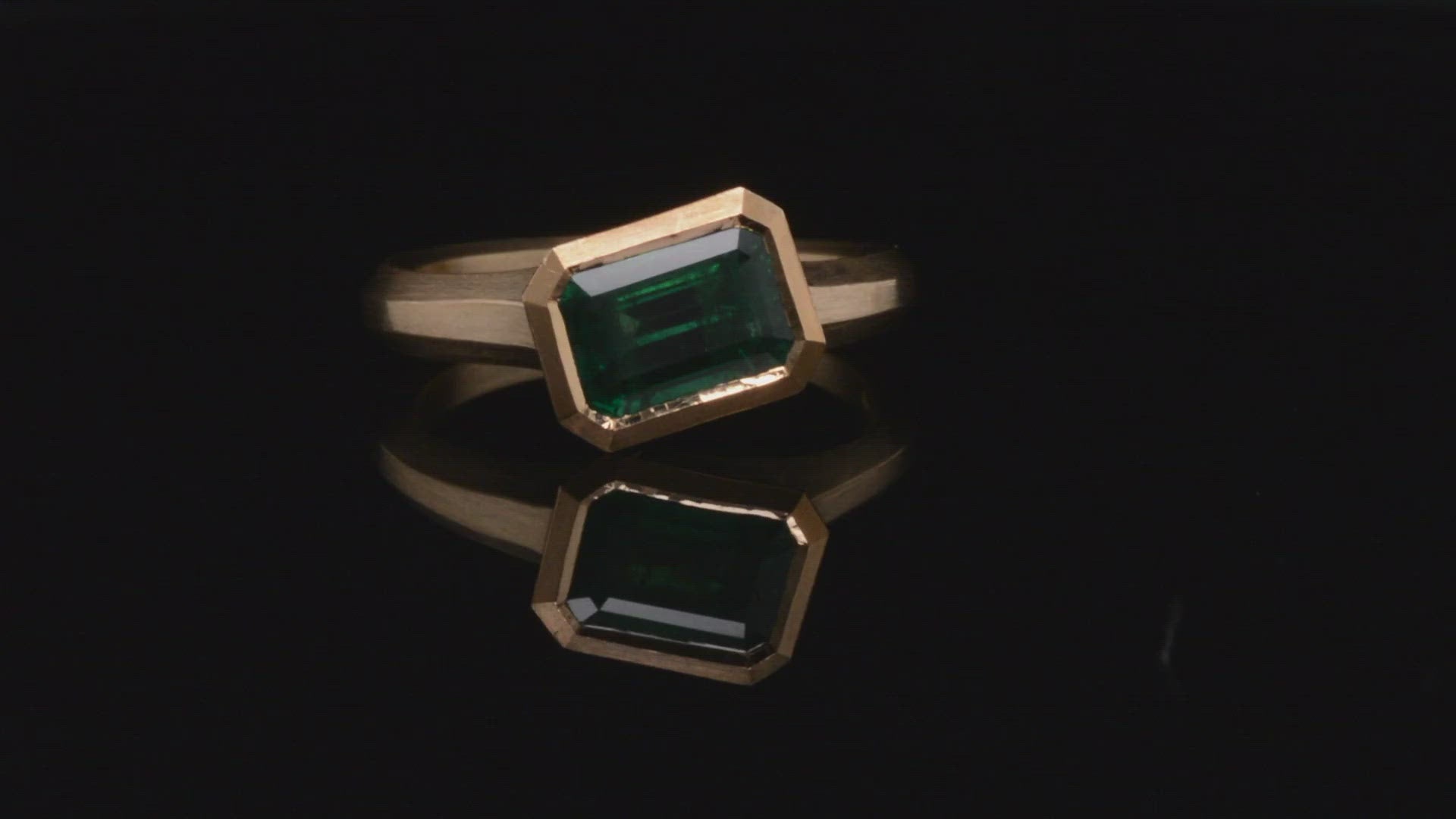 The elegant proportions of this ring make it equally suited for wear as a dress or engagement ring. The yellow gold and emerald Arris ring can be paired with a matching hand carved wedding band if desired.