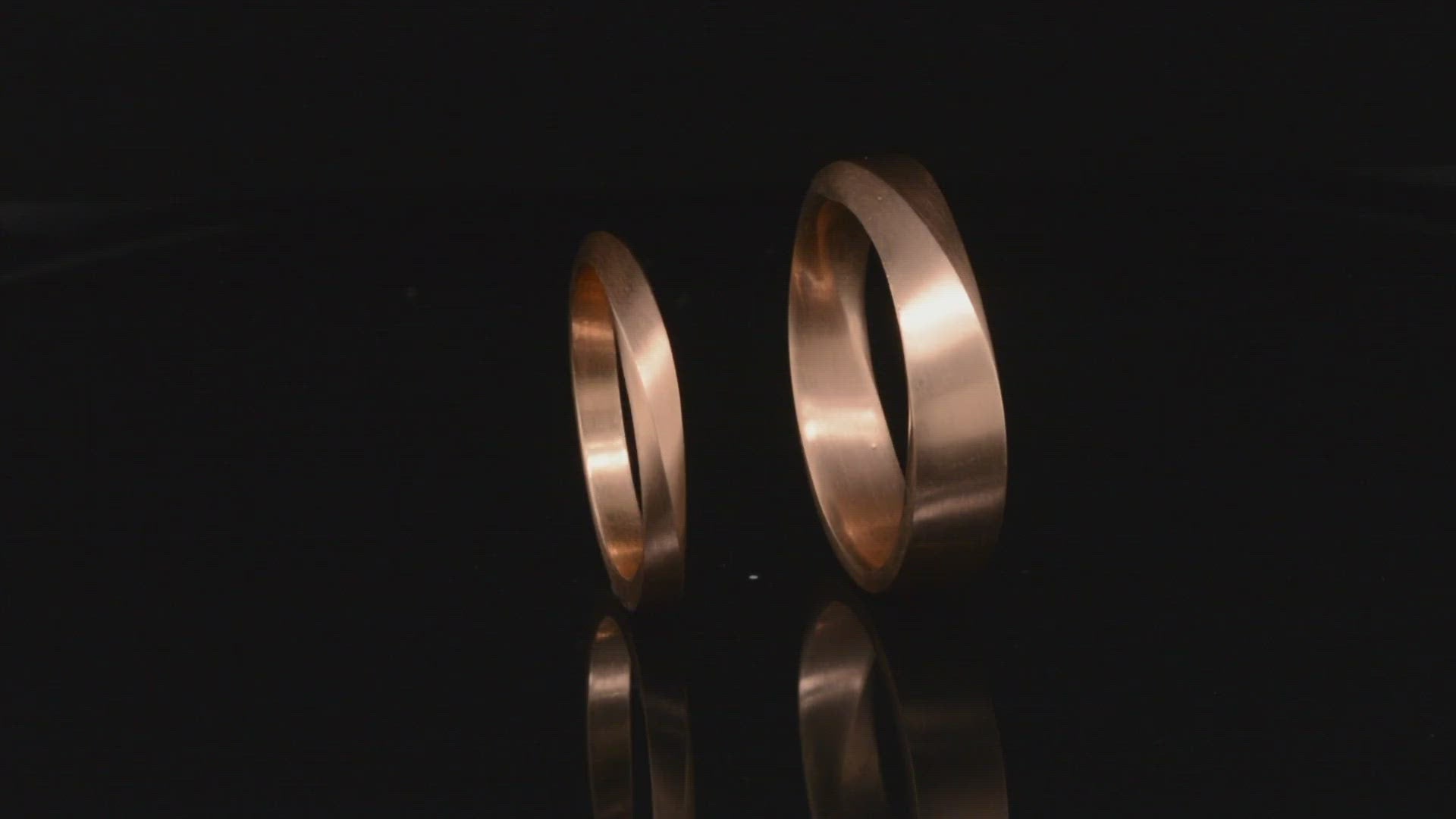 There are two variations, of the Möbius band, a slow continuous twist that slowly revolves around the entire ring, and a top twist version (pictured), which twists only at the top of the ring.