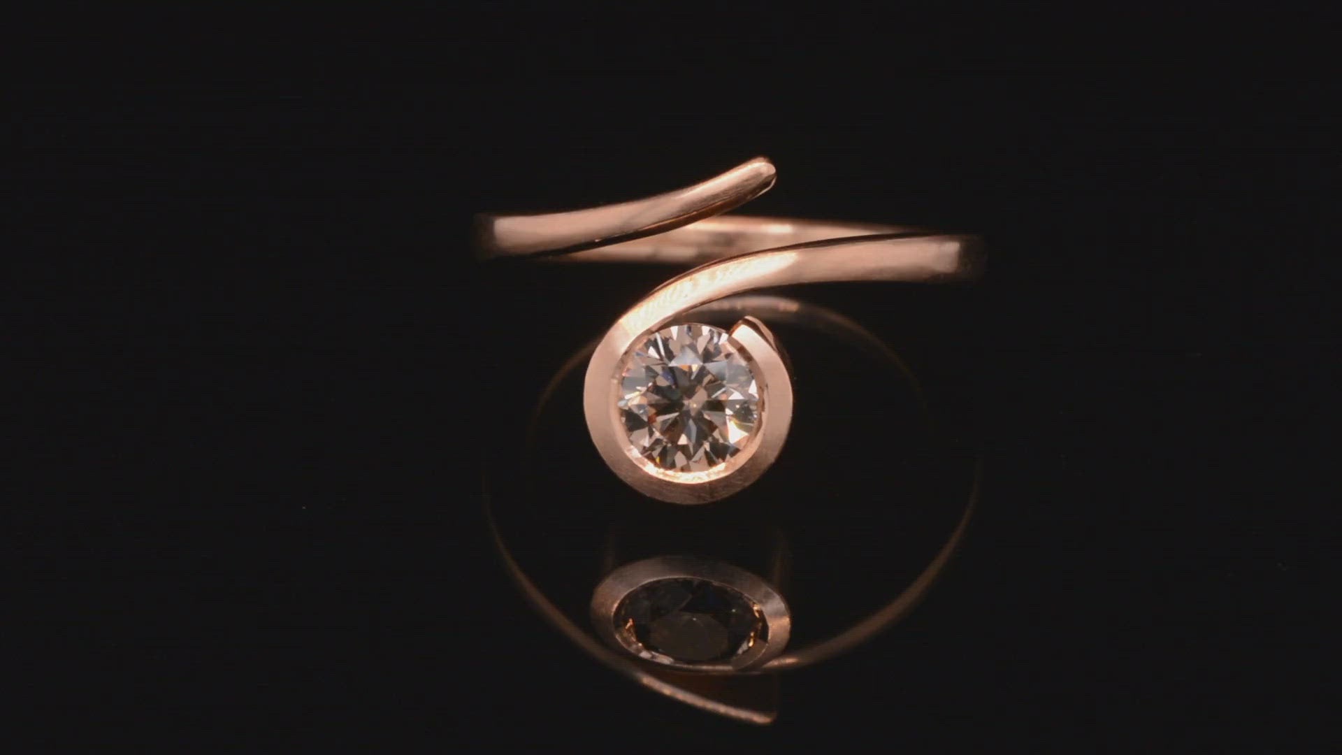 Distinctive and modern, the 18ct Rose Gold Round Cognac Diamond Twist Engagement Ring is an unusual and unique engagement ring design. A .73 carat cognac brilliant cut round diamond is set into a handmade band that tapers and twists around the finger to form an open ring. The metal has been brushed to a soft satin finish, which emphasises the colour of the rose gold. At one end the stone is set in an open bezel, while the other end tapers to a delicate flick. This asymmetric and unusual solitaire engagement ring is crafted to last more than a lifetime, making it perfect for everyday wear.